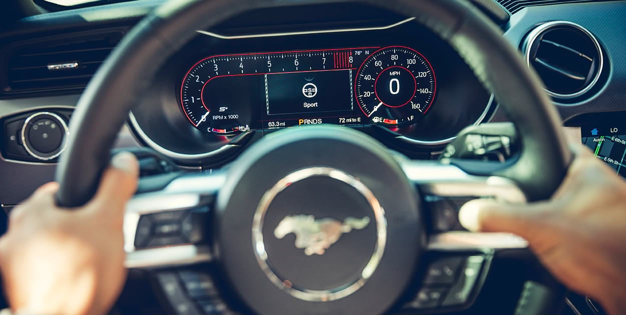 Esta funcionalidad muestra información útil y divertida (tiempo de vuelta, aceleración, frenado, etc) en tiempo real para que saques el máximo provecho de tu Mustang en circuito.